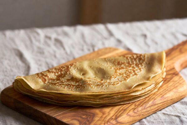 - フッ素樹脂加工のフライパンまたはホットプレートを中火にかけ、バターまたは油を薄く塗ります。