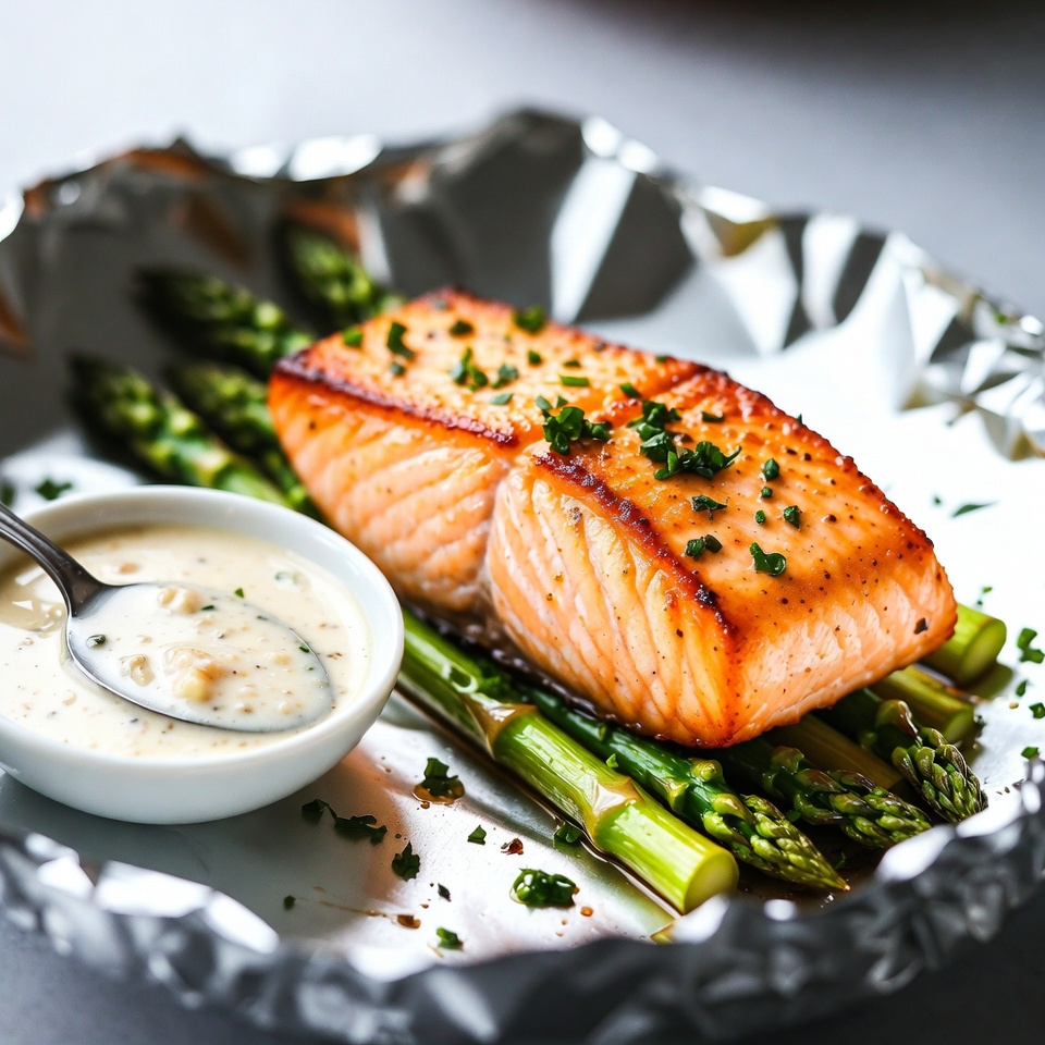 レモンのさわやかな酸味とバターのコクが引き立つ、サーモンとアスパラの簡単オーブンレシピです。ガーリックとパルメザンチーズを合わせることで、香り豊かで満足感のある一皿に仕上がります。アルミホイルで包んで焼くため、うま味をしっかり閉じ込められるのも魅力です。