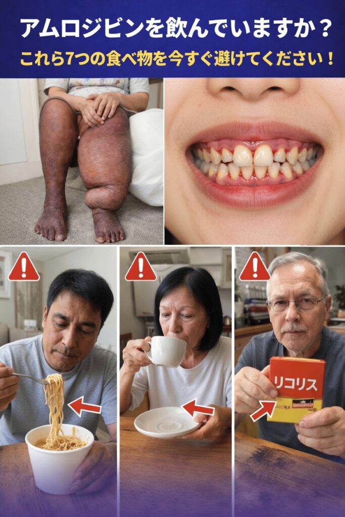 といった状態を招く可能性があり、アムロジピンによる血圧コントロールの妨げとなることがあります。Drugs.com などの医療情報サイトでも、甘草の過剰摂取への注意が示されています。