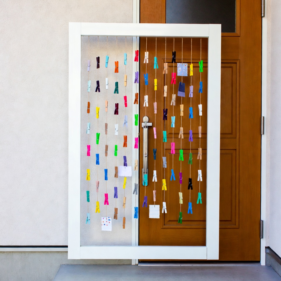 洗濯ばさみといくつかの基本的な材料があれば、玄関ドアは簡単におしゃれで実用的な空間に生まれ変わります。