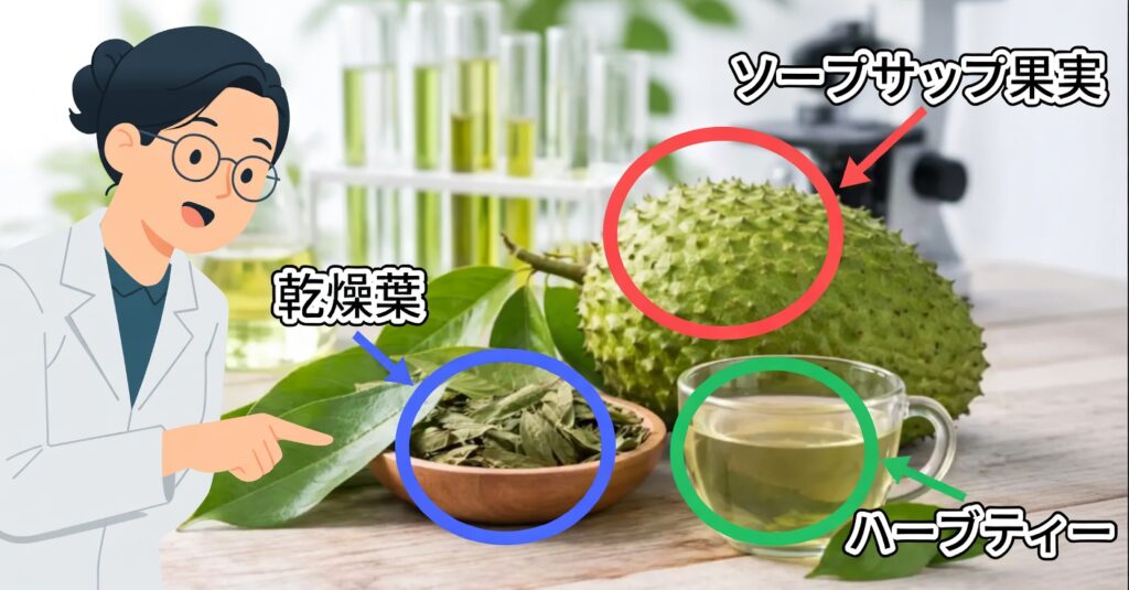 グアナバナの場合、とくに**アノナシン(annonacin)**などのアセトゲニン系成分について、**神経への影響(神経毒性)**が研究されています。