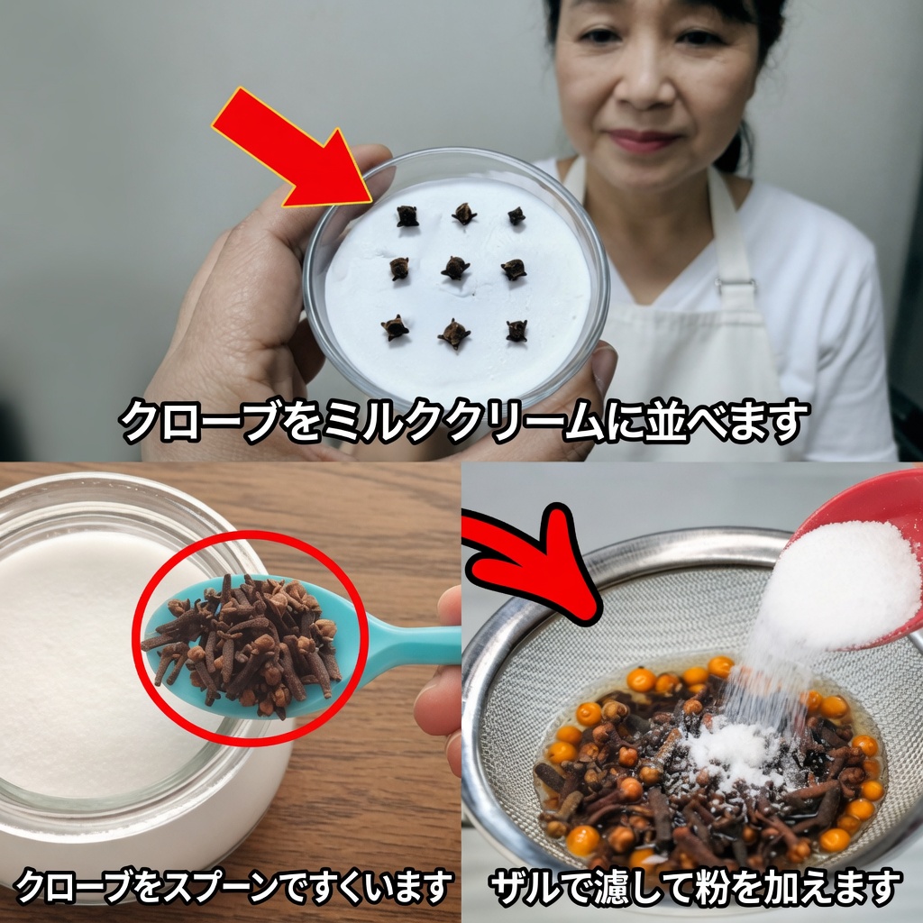 クローブ×重曹の習慣がうまく働いていると、鏡の前で笑顔がすっきり明るく見え、部屋の空気がほんのりスパイシーに整うのを感じやすくなります。スパイスラックとパントリーの定番アイテムだけで、手軽に清潔感のある暮らしを支える方法として、ぜひ取り入れてみてください。