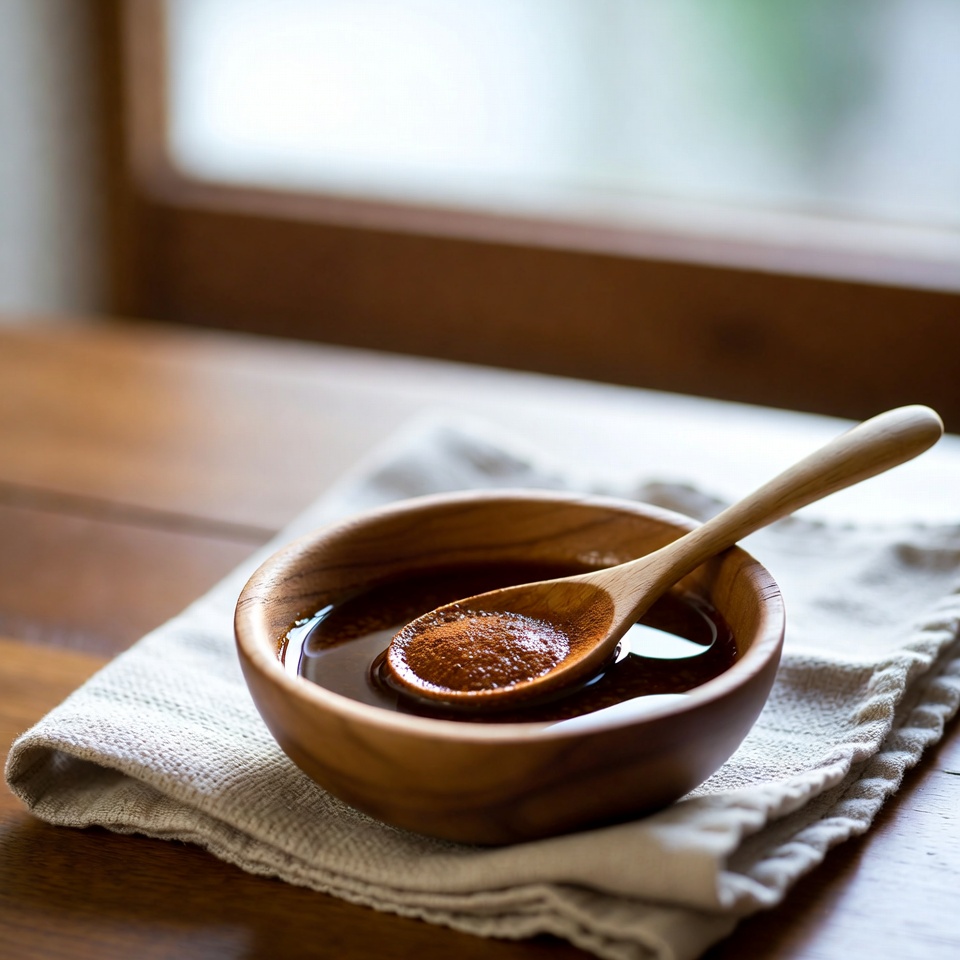 - シナモンパウダーを加え、ダマがなくなるまで混ぜて均一なペースト状にします。