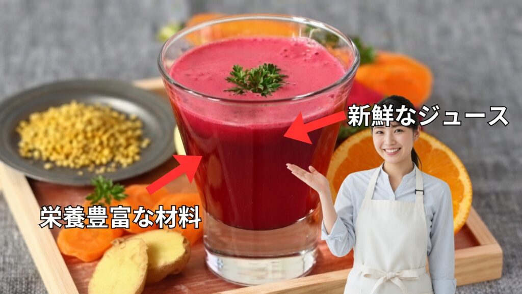 自然派リバイタルジュースは、朝の一杯で「エネルギー補給・免疫ケア・デトックス」が同時に叶う心強いドリンクです。スイカ、ニンジン、ビーツ、ショウガ、レモンといったシンプルな素材を組み合わせるだけで、体の内側からコンディションを整え、肌や気分にまで良い変化をもたらしてくれます。