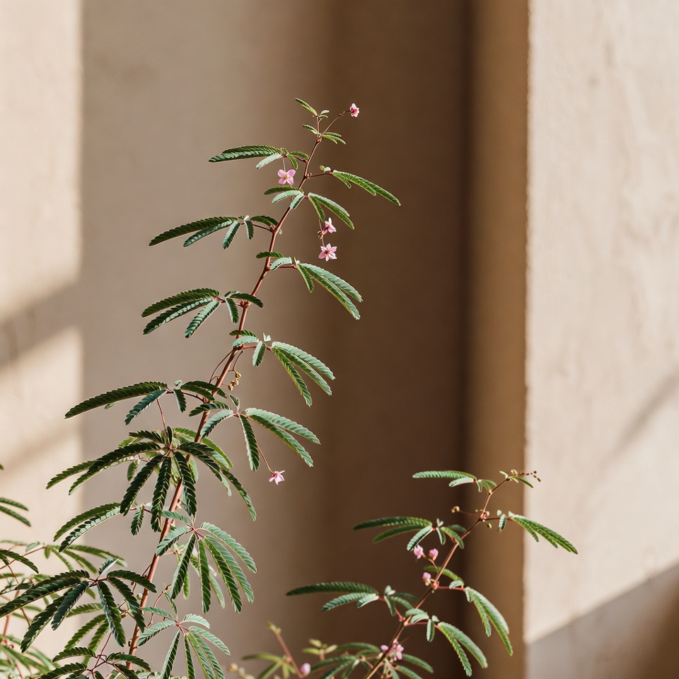 ミモザ・プディカ(Mimosa pudica)は、英語で「sensitive plant」「touch-me-not」、ポルトガル語では「dormideira」とも呼ばれるマメ科の植物です。触れると葉をすばやく閉じるユニークな反応でよく知られていますが、その魅力はそれだけではありません。
