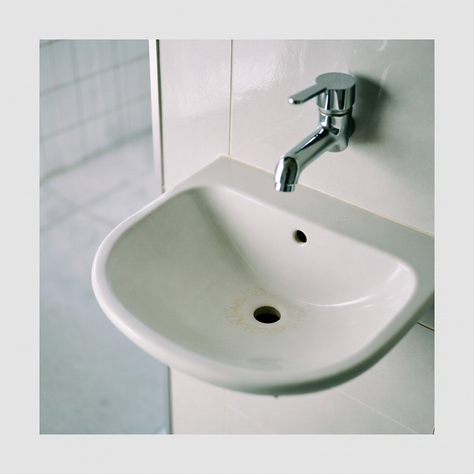 洗面ボウルの蛇口からぬるま湯を流し、オーバーフロー穴と排水管の中を十分にすすぎます。