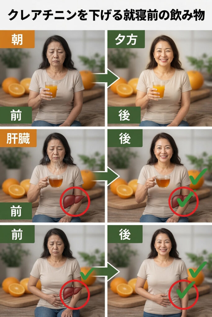 忙しい毎日を過ごしていると、体力やコンディションの微妙な変化に気づくことがあります。クレアチニンは、そうした日々の負担に体がどう対応しているかを映し出す指標のひとつとして注目されることもあります。そのため、夜になると「寝る前のちょっとした習慣で何か変えられるのでは」と気になる方もいるでしょう。