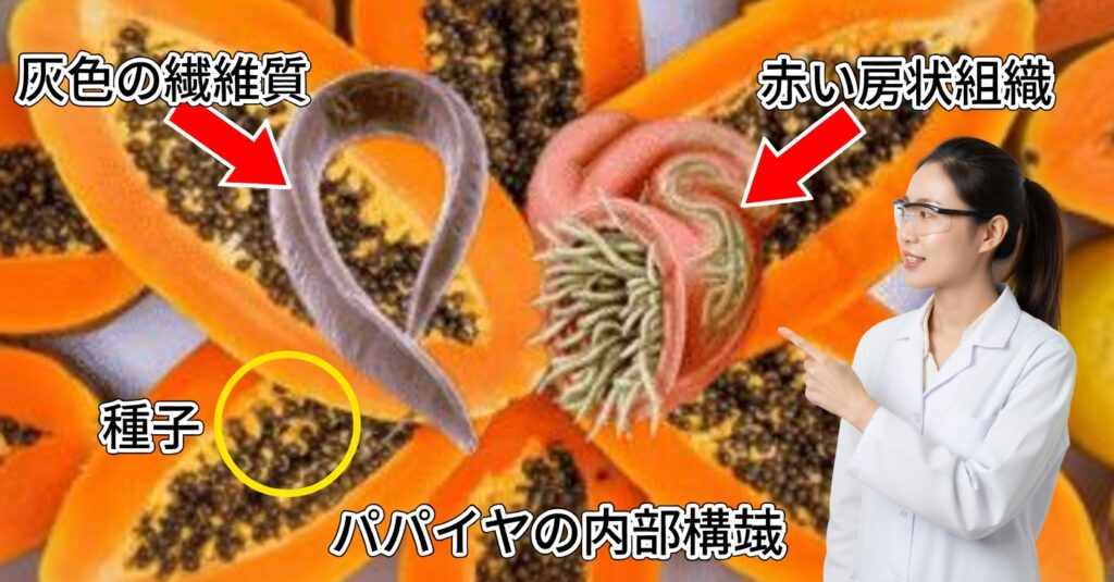 一方、パパイヤの果肉にはたっぷりの食物繊維と消化酵素が含まれており、便通を促し、腸内にたまった老廃物をスムーズに排出するのに役立ちます。