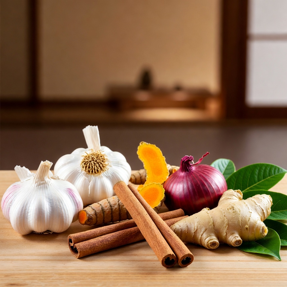 にんにく、生姜、ターメリック、シナモン、玉ねぎ、グアバの葉は、それぞれが健康維持に役立つ特性を持つことで知られています。これらを一緒に煮出すことで、免疫ケア、消化サポート、炎症対策、めぐりの改善を一度に取り入れやすくなります。