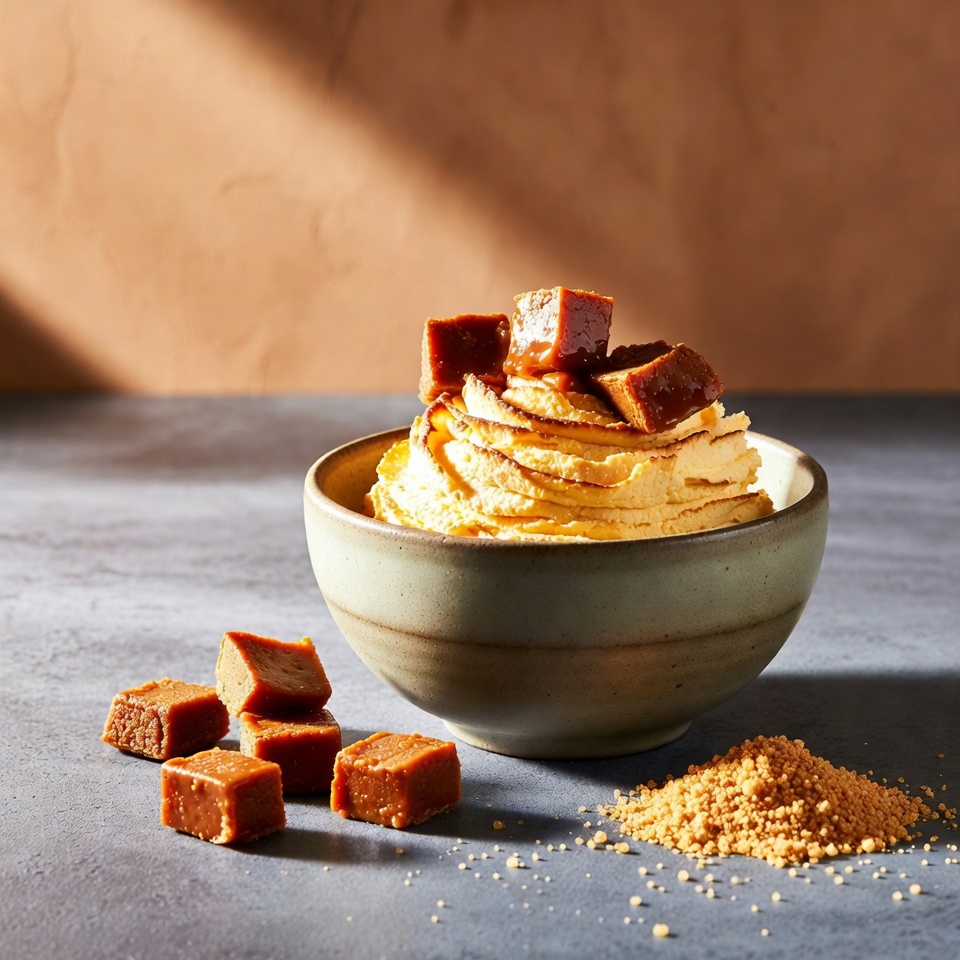 なめらかでとろける口どけに、カリッと香ばしいナッツのアクセントがたまらない「濃厚キャラメルクリーム」。バターのようにコク深いキャラメル風味と、リッチな生クリームベースを合わせた、オーブン不要の簡単ノンベイクデザートです。