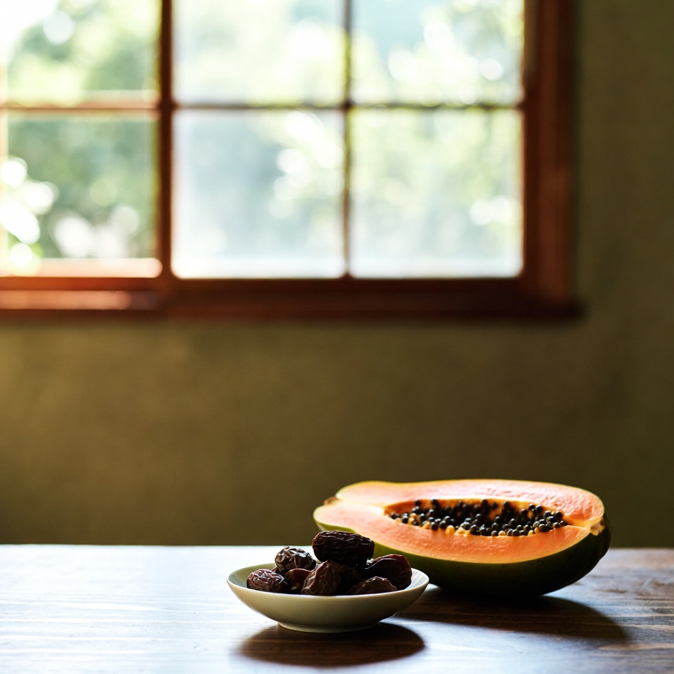 運動前や仕事前に、ひと口大に切ったパパイヤとデーツを一緒に軽食として食べ、自然なエネルギーブーストに活用します。