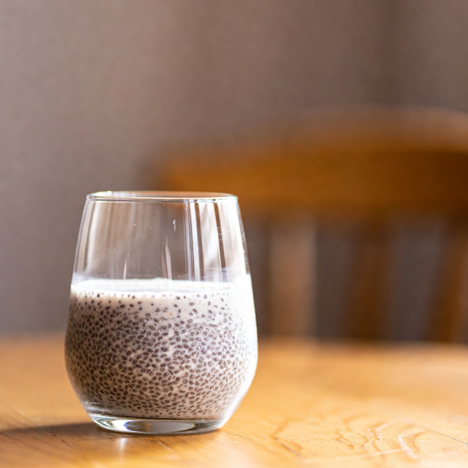 - チアシードを水1/4カップに入れ、10〜15分置いてジェル状にします。