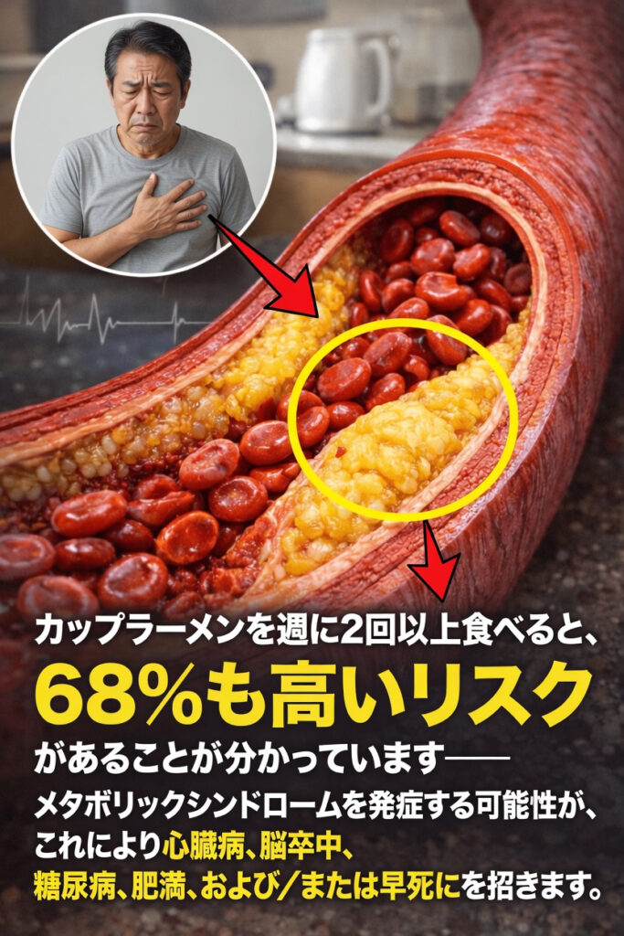 しかし、この何気ない食習慣が、知らないうちに体型、エネルギー状態、そして全身の健康に影響を積み重ねているとしたらどうでしょうか。研究では、インスタント麺を頻繁に食べる人ほど、メタボリックシンドロームを発症する可能性が高まることが示されています。これは、心疾患、脳卒中、2型糖尿病などの深刻な病気のリスクを高める要因の集まりです。