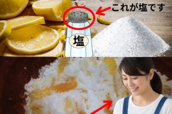 - ぬるま湯1杯に、レモン半分を絞る